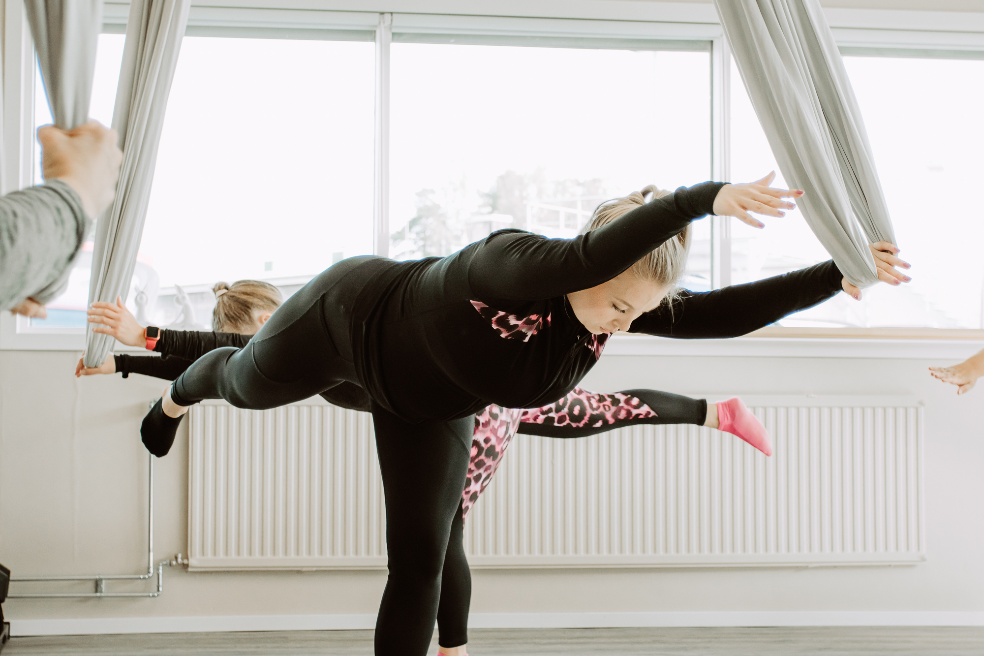 Miellyttävä ja rento harjoitus jossa tehdään katosta roikkuvan kankaan tuella erilaisia harjoitteita ja venytyksiä. Harjoituksella on todettu olevan vaikutusta selän ja hartiaseudun lihasjäykkyystilojen avaamisessa sekä selkävaivojen hoidossa. Aerialissa harjoitetaan liikkuvuutta ja tasapainoa sekä kehitetään etenkin keskivartalon syviä lihaksia, kehonhallintaa ja venyvyyttä. Harjoitus on turvallinen ja sopii mainiosti myös aloittelijalle sillä tunnilla on mahdollisuus edetä oman tasonsa mukaisesti.